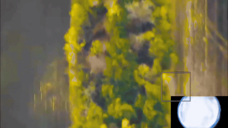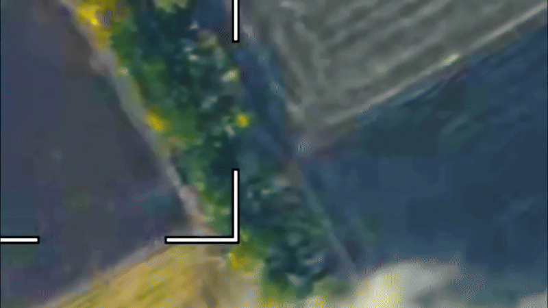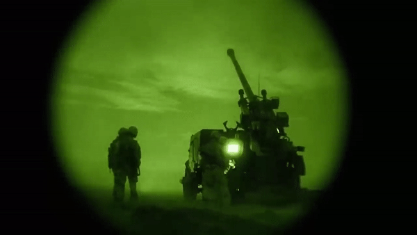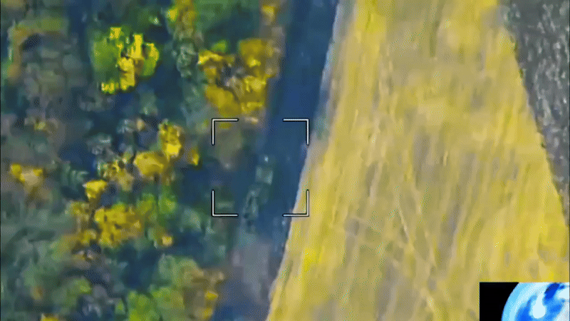 Hình ảnh từ UAV trinh sát Supercam cho thấy khẩu pháo này đang di chuyển dọc một con đường bên rìa rừng, có vẻ đang chuẩn bị vào vị trí khai hỏa.