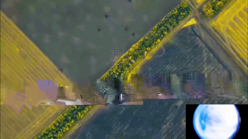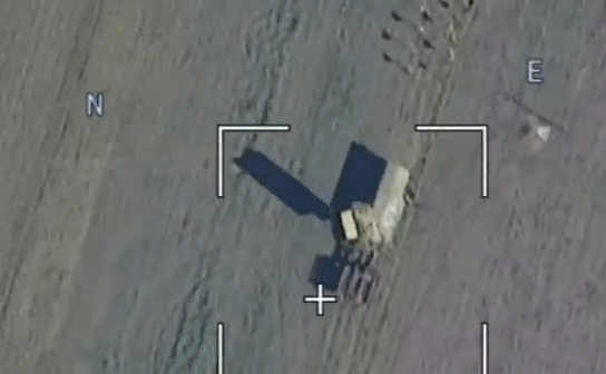 Ít phút sau, chiếc Lancet xuất hiện và lao thẳng vào mục tiêu. Một vụ nổ lớn bùng lên, cột khói đen dày đặc bao phủ khu vực.