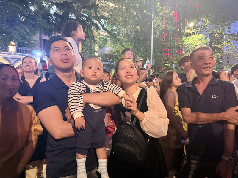 Không chỉ riêng gia đình anh Ánh, rất đông người dân có mặt tại khu vực trung tâm đều không giấu được sự phấn khích, liên tục reo hò, ghi lại những khoảnh khắc đẹp nhất bằng điện thoại.