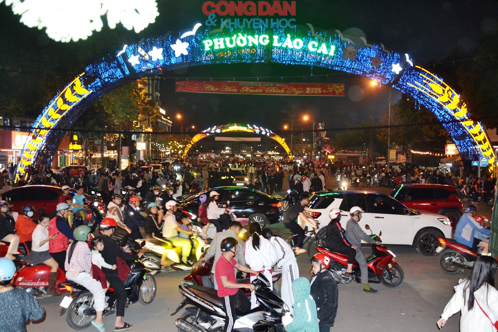 Phố Đinh Lễ ở trung tâm phường Lào Cai đón Giao thừa. Ảnh: Quốc Hồng