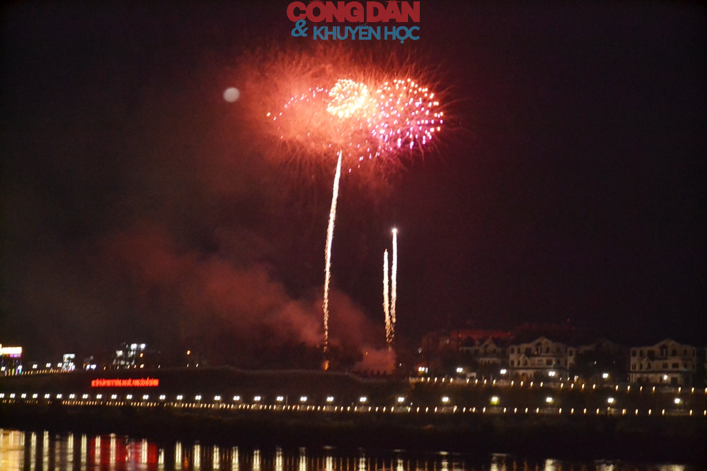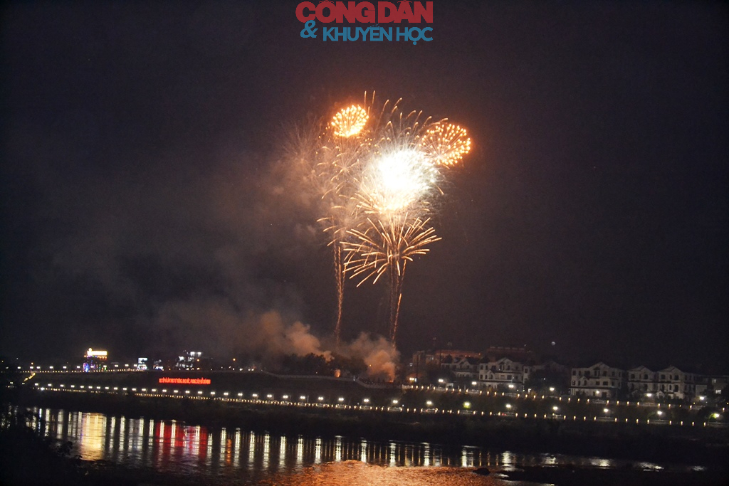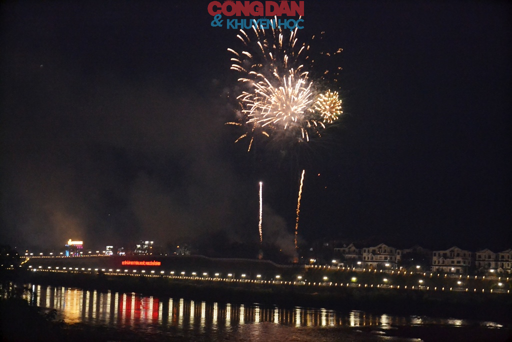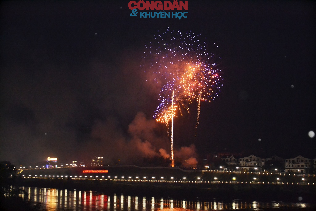 Phảo hoa tỏa sáng soi xuống dòng sông Hồng cuộn chảy về xuôi. Ảnh: Quốc Hồng