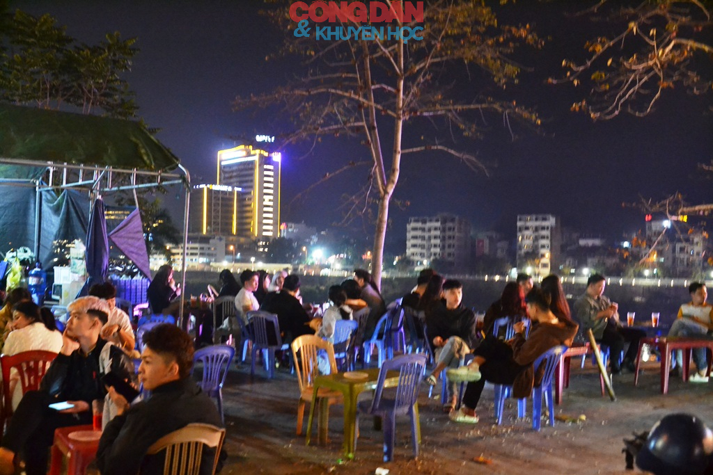 Nhiều bạn trẻ tụ hội ngay sát cửa khẩu, nơi giao nhau giữa sông Hồng và sông Nậm Thi để đón năm mới. Ảnh: Quốc Hồng