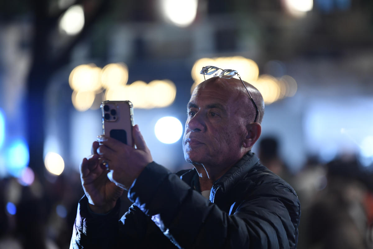 Vị khách nước ngoài liên tục đưa máy ảnh, điện thoại lên ghi hình, không giấu được sự thích thú trước không khí lễ hội náo nhiệt của Hà Nội. Ảnh: Phạm Sỹ.