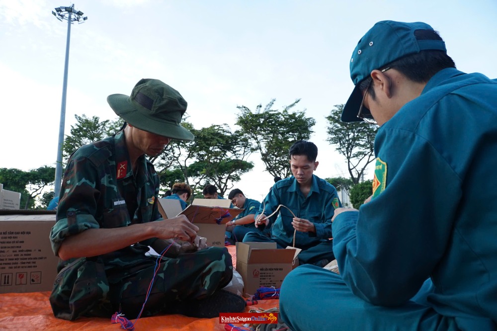 Trong suốt 2 ngày qua, lực lượng chức năng đã triển khai quy trình nghiêm ngặt từ sắp xếp nòng pháo, đi dây điện đến đấu nối đạn vào giàn.