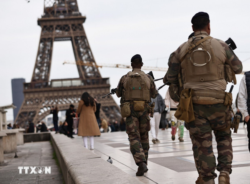 Binh sỹ Pháp tuần tra tại thủ đô Paris. (Ảnh: THX/TTXVN)
