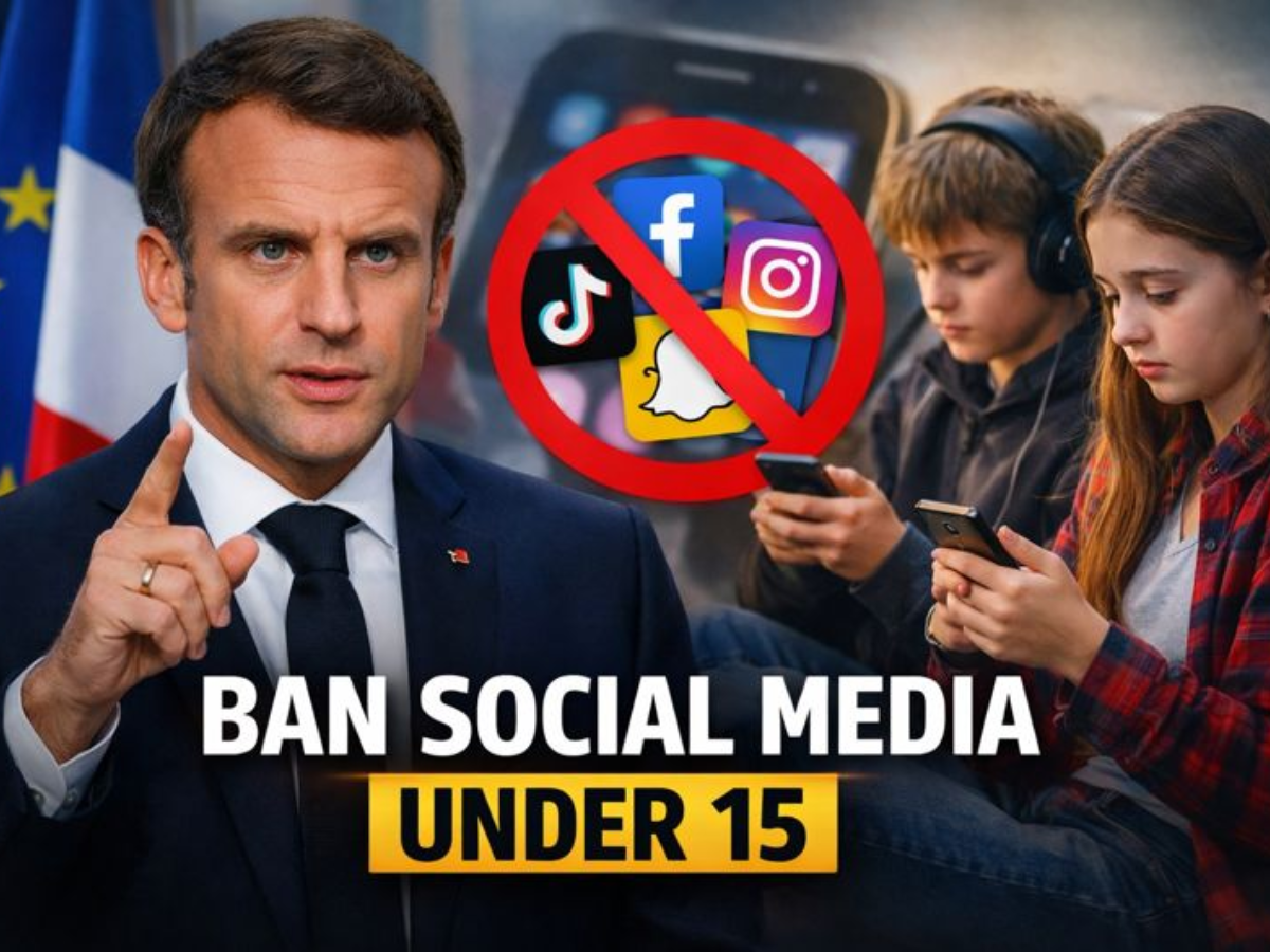 Tổng thống Pháp Emmanuel Macron tuyên bố sẽ cấm trẻ dưới 15 tuổi sử dụng mạng xã hội và cấm điện thoại di động trong các trường trung học. Ảnh: News X
