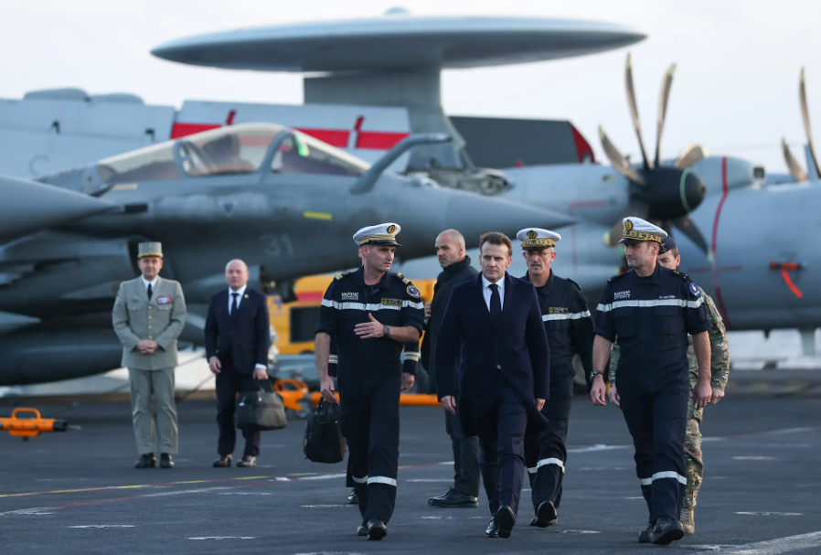 Sau đó, khi lên thăm tàu sân bay Charles de Gaulle của Pháp đang hoạt động tại Địa Trung Hải, ông Macron giải thích rằng sự hiện diện của hải quân nhằm bảo vệ công dân Pháp trong khu vực, bảo vệ các đồng minh và có thể tham gia hộ tống tàu thuyền đi qua eo biển Hormuz.
