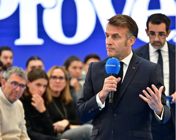 Tổng thống Emmanuel Macron, tham dự một cuộc tranh luận về tác động của mạng xã hội hồi đầu tháng 12-2025 tại Marseille. Ảnh: Christian Liewig