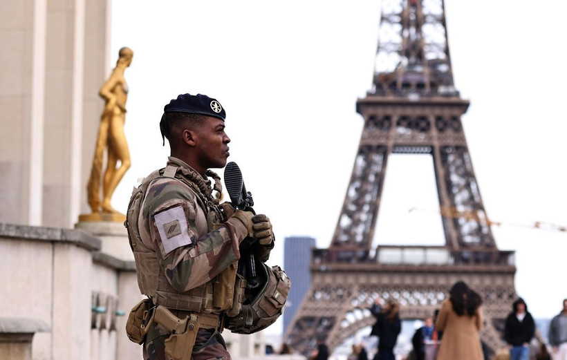 Binh sỹ Pháp tuần tra tại Thủ đô Paris, ngày 25/3/2024. (Ảnh: THX/TTXVN)