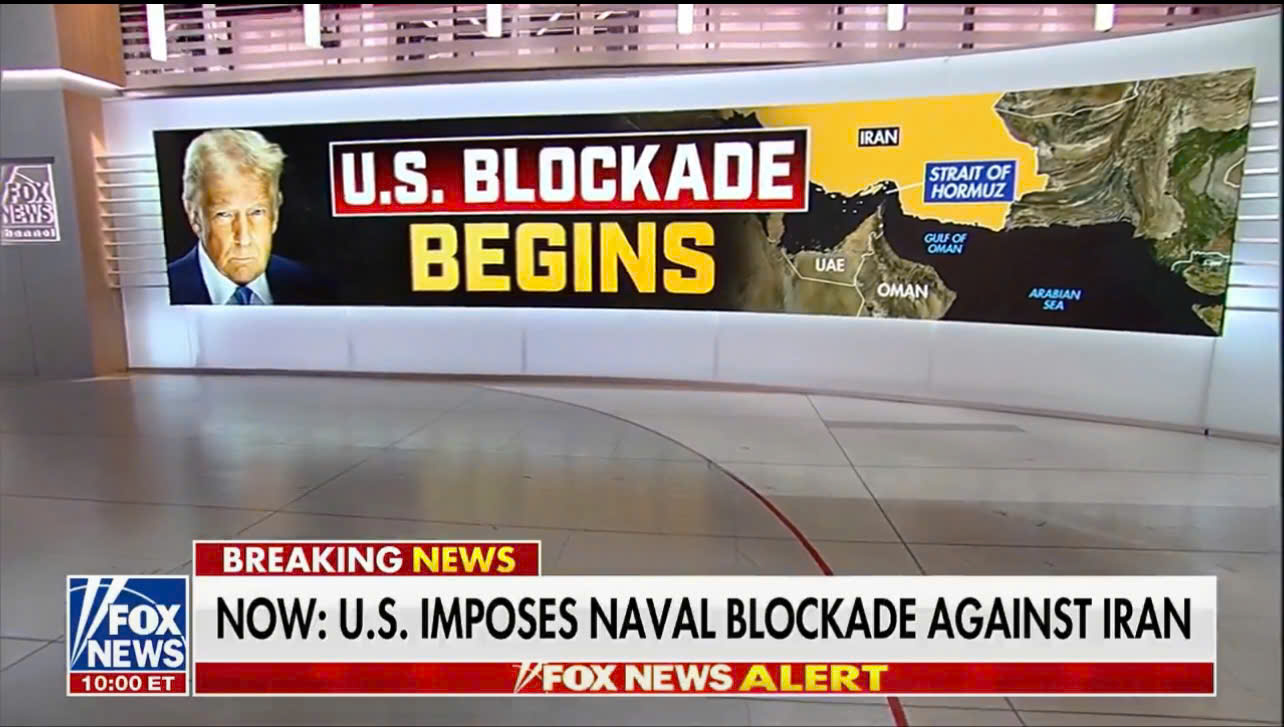Thông tin Mỹ phong tỏa các hoạt động giao thông hàng hải ra vào các cảng của Iran trên truyền hình Mỹ. Ảnh: FOX NEWS