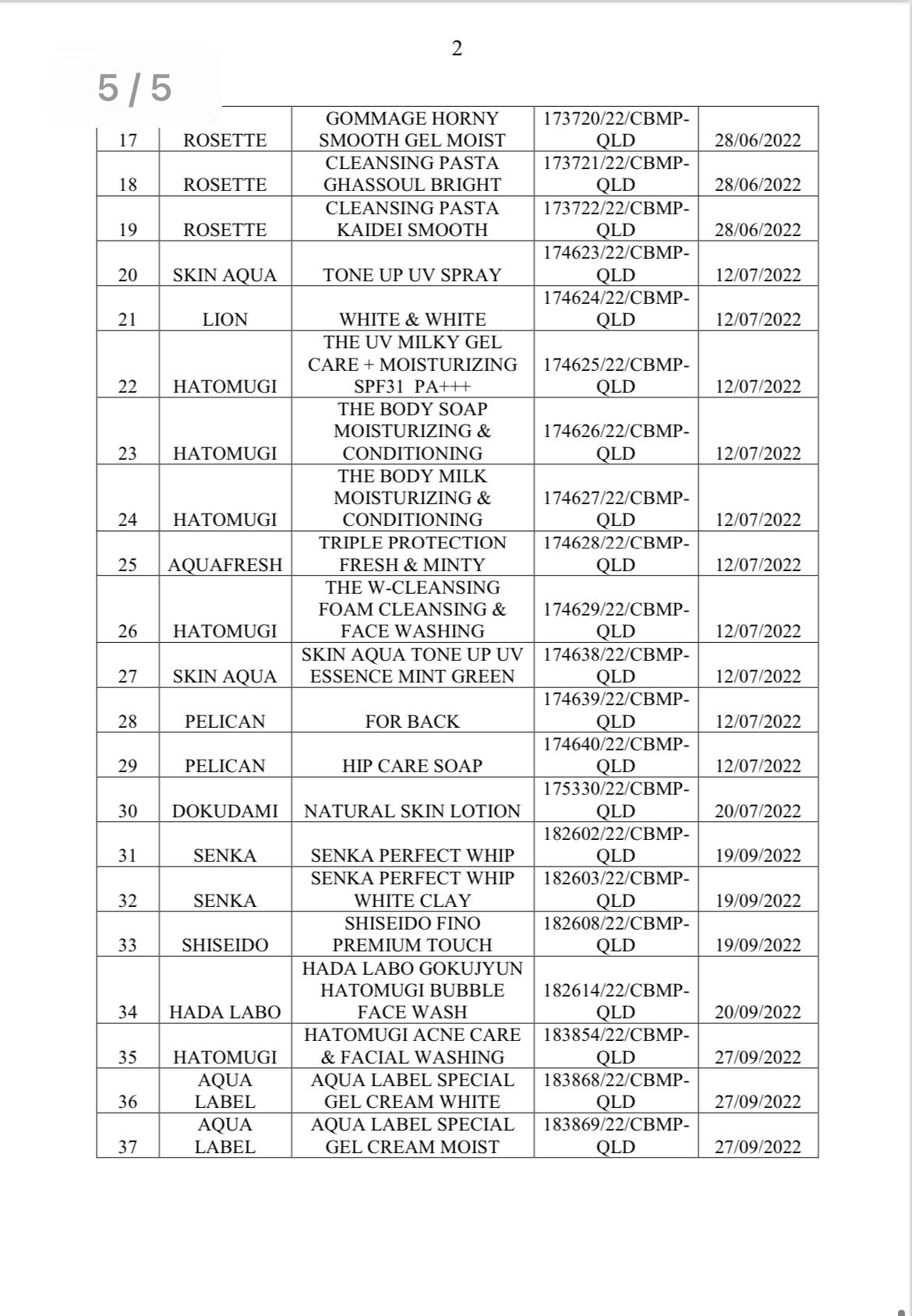 Các sản phẩm vi phạm chủ yếu là mỹ phẩm chăm sóc da, sữa rửa mặt, kem chống nắng, sữa tắm, cùng nhiều sản phẩm chăm sóc cá nhân khác như: Hatomugi, Skin Aqua, Senka, Shiseido, Hada Labo, Anessa…; được cấp số tiếp nhận phiếu công bố từ năm 2022.