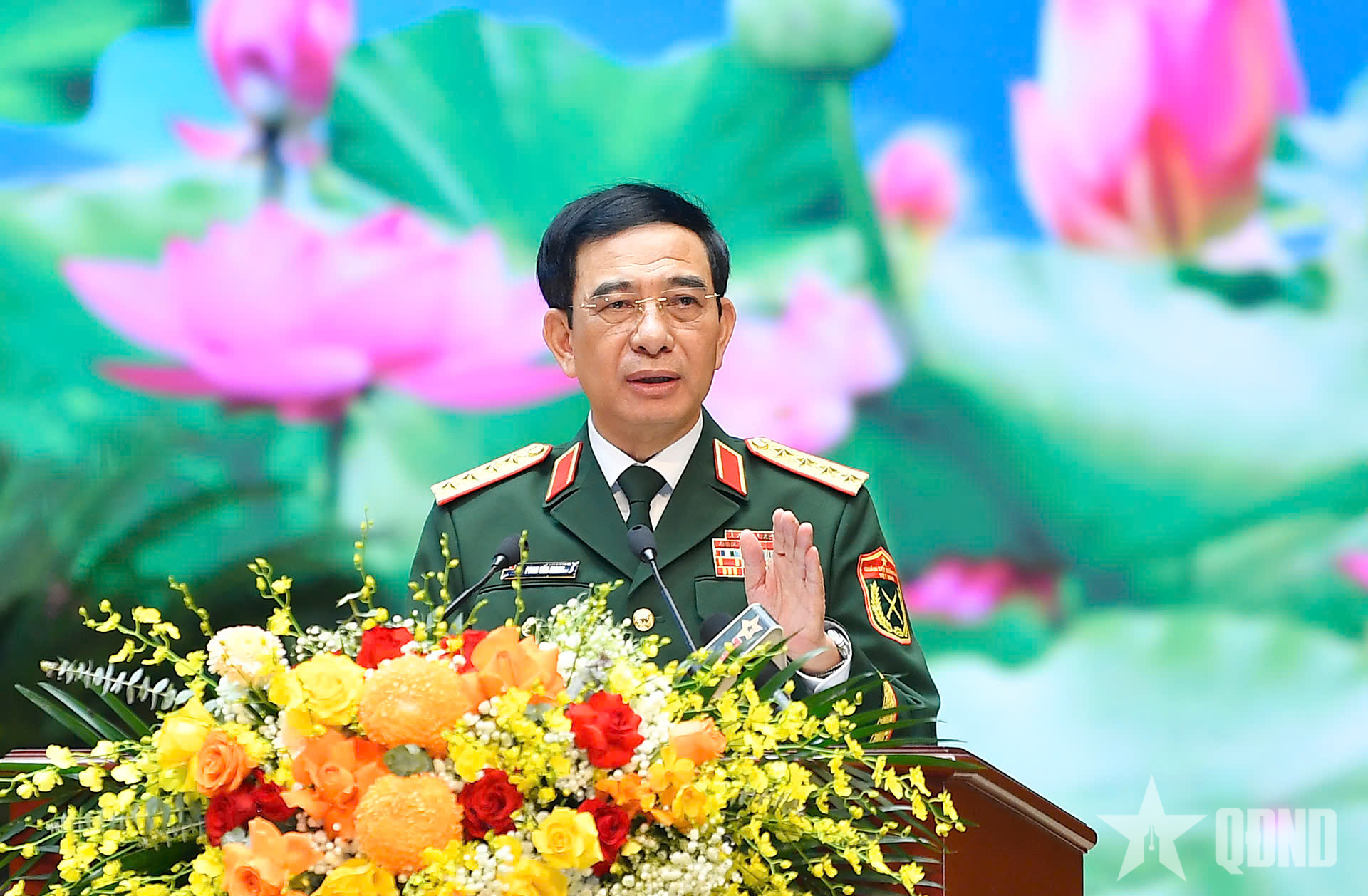 Đại tướng Phan Văn Giang phát biểu chỉ đạo Đại hội đại biểu Đoàn TNCS Hồ Chí Minh Quân đội lần thứ XI. Ảnh: TUẤN HUY