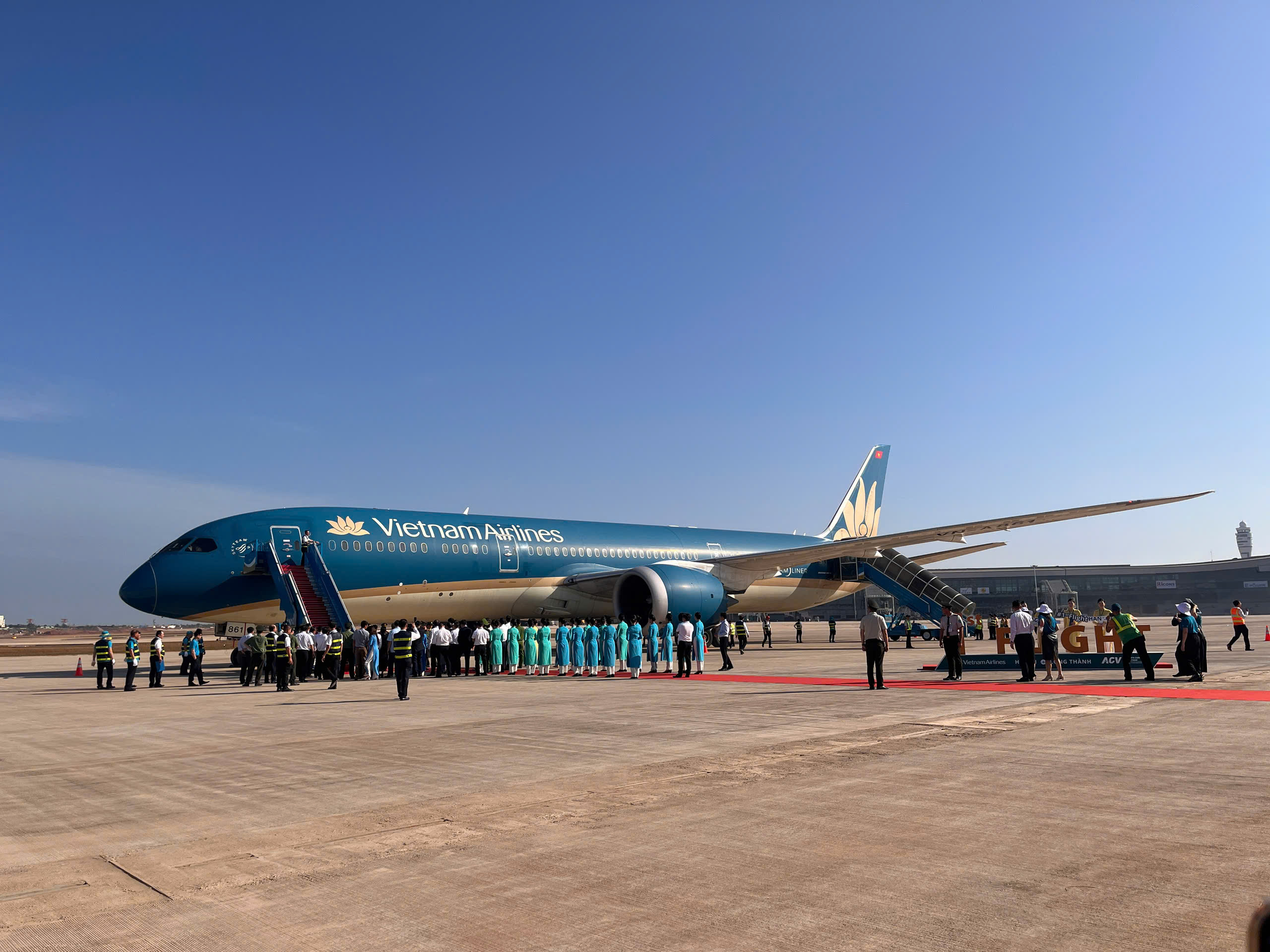 Chuyến bay của hãng hàng không quốc gia Vietnam Airlines đáp xuống sân bay Long Thành