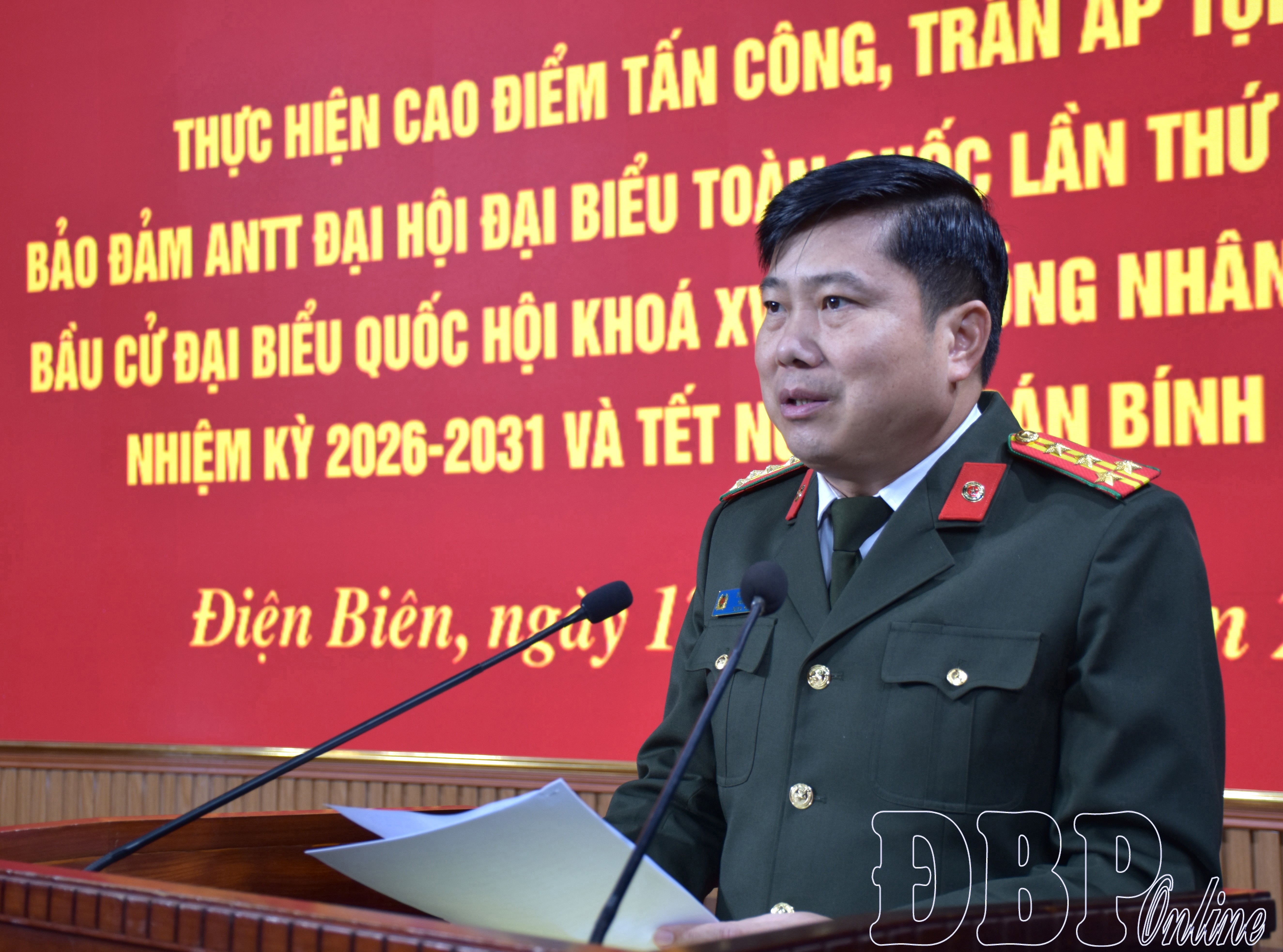 Phát biểu phát động đợt cao điểm, Giám đốc Công an tỉnh nhấn mạnh: Năm 2026 sẽ diễn ra nhiều sự kiện chính trị trọng đại của đất nước, của tỉnh, đây là thời điểm các thế lực thù địch tăng cường hoạt động chống phá, tội phạm và tệ nạn xã hội diễn biến phức tạp với phương thức, thủ đoạn tinh vi, đặt ra yêu cầu cao đối với nhiệm vụ bảo đảm an ninh, trật tự.