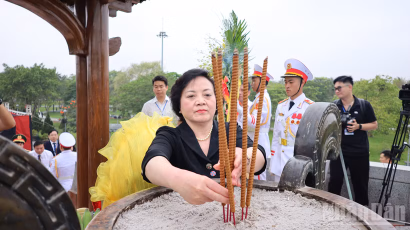 Phó Thủ tướng Chính phủ Phạm Thị Thanh Trà dâng hương tại Đài tưởng niệm trung tâm, Di tích quốc gia đặc biệt Thành Cổ Quảng Trị.
