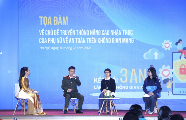 Tại lễ phát động cũng diễn ra Tọa đàm với chủ đề “Truyền thông nâng cao nhận thức của phụ nữ về an toàn trên không gian mạng”. Thượng tá Đỗ Thái Huy, Phó Trưởng phòng Thông tin an ninh mạng, Cục An ninh mạng và phòng, chống tội phạm sử dụng công nghệ cao, Bộ Công an, đã chia sẻ về thực trạng tội phạm mạng ngày càng tinh vi, thủ đoạn nhằm vào trẻ em gái và phụ nữ để nâng cao nhận thức cho cộng đồng công tác phòng ngừa. Các diễn giả cũng nêu ra vai trò phối hợp giữa cơ quan quản lý nhà nước, doanh nghiệp công nghệ và người dùng; đưa ra những khuyến nghị thiết thực nhằm giúp phụ nữ, sinh viên nhận diện rủi ro, sử dụng các công cụ công nghệ để phòng ngừa lừa đảo, bảo vệ thông tin cá nhân và tài chính.