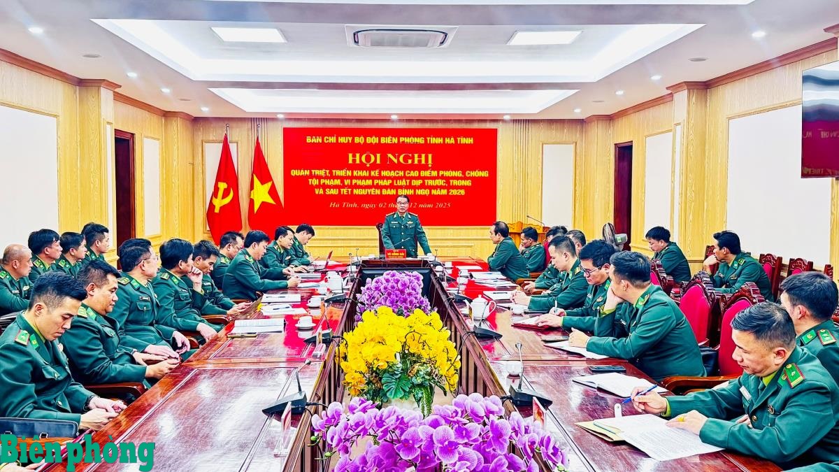 Lãnh đạo Ban Chỉ huy BĐBP tỉnh Hà Tĩnh quán triệt, triển khai kế hoạch cao điểm phòng, chống tội phạm, vi phạm pháp luật trên địa bàn biên giới, vùng biển dịp trước, trong và sau Tết Nguyên đán Bính Ngọ năm 2026. Ảnh: Thế Mạnh