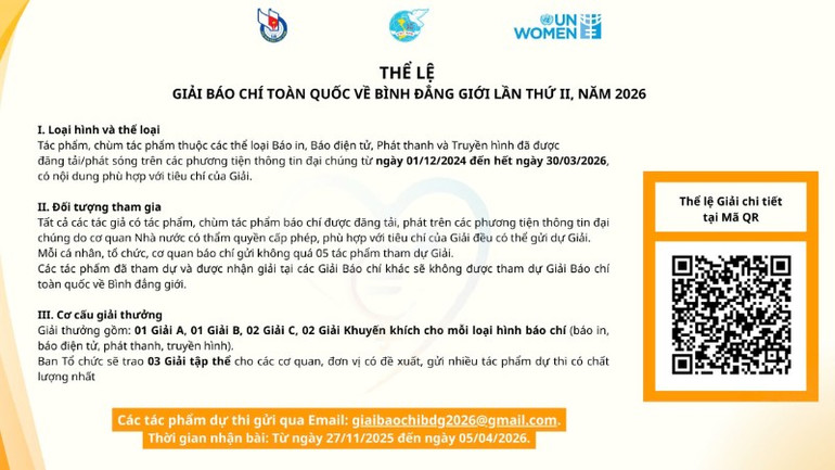 Thể lệ Giải Báo chí toàn quốc về Bình đẳng giới lần thứ II năm 2026.