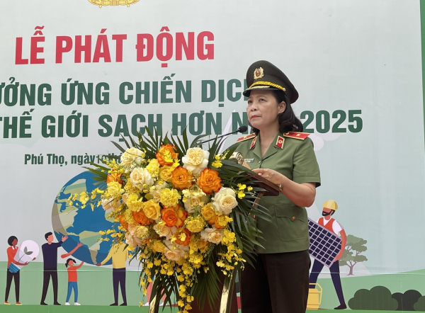Thừa ủy quyền của lãnh đạo Bộ Công an, Thiếu tướng Phạm Thị Lan Anh phát động hưởng ứng Chiến dịch "Làm cho thế giới sạch hơn" năm 2025 trong toàn lực lượng CAND.