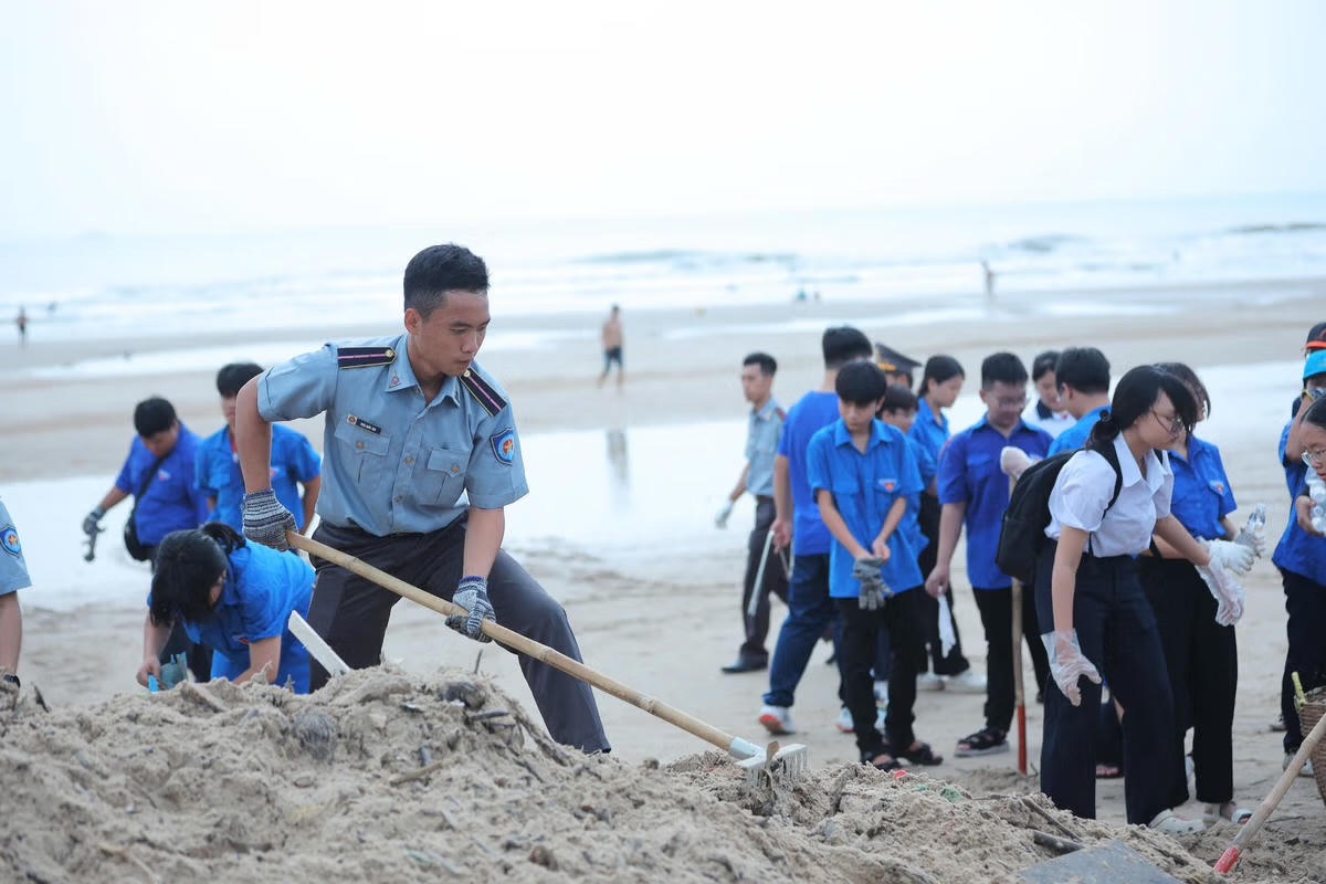Bộ Tư lệnh Vùng Cảnh sát biển 3 phối hợp cùng phường Tam Thắng (TP Hồ Chí Minh) tổ chức ra quân "Ngày Chủ nhật xanh" làm sạch khu vực biển Bà Rịa - Vũng Tàu. Ảnh: Đức Định