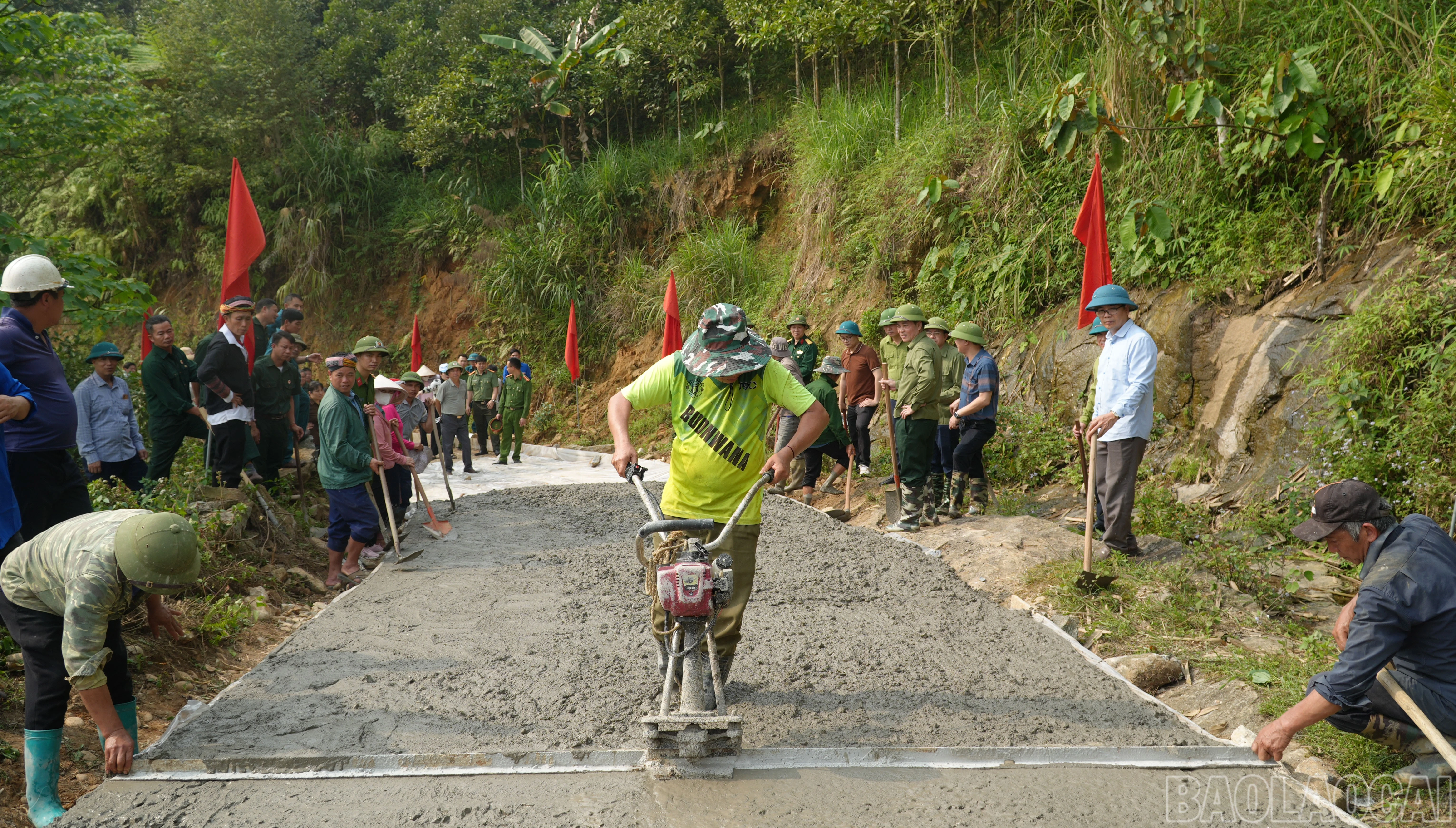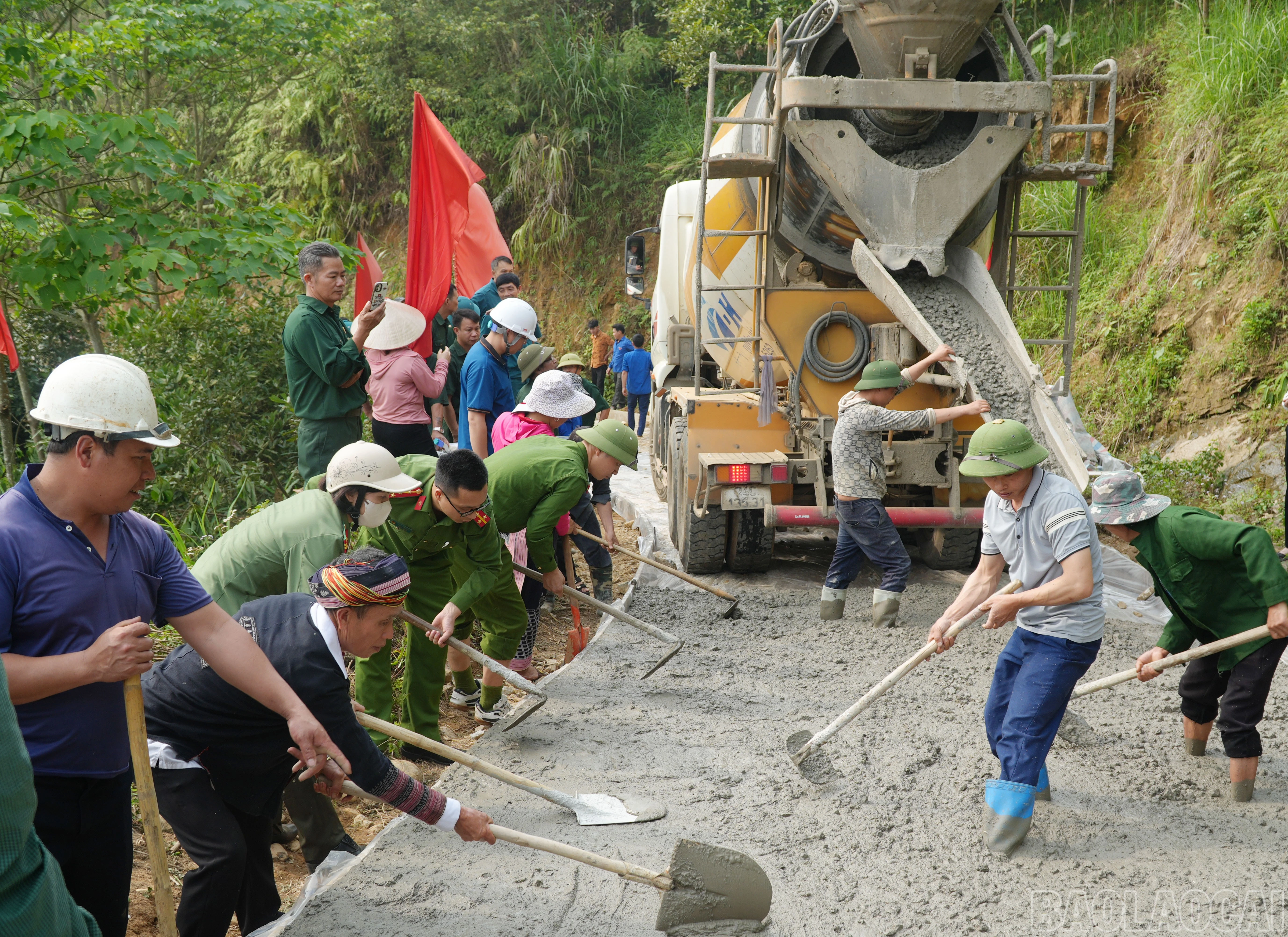 Ngay sau lễ phát động, các lực lượng đã đồng loạt ra quân thi công tuyến đường nối Tổ dân phố Bản Vệ đi Tổ dân phố Đêu 1 với chiều dài 1 km, mặt đường rộng 5 mét. Công trình không chỉ mang ý nghĩa phát triển hạ tầng giao thông mà còn là minh chứng rõ nét cho tinh thần đoàn kết, chung sức đồng lòng của Nhân dân khi tích cực đóng góp ngày công, hiến đất và vật tư để triển khai thực hiện.