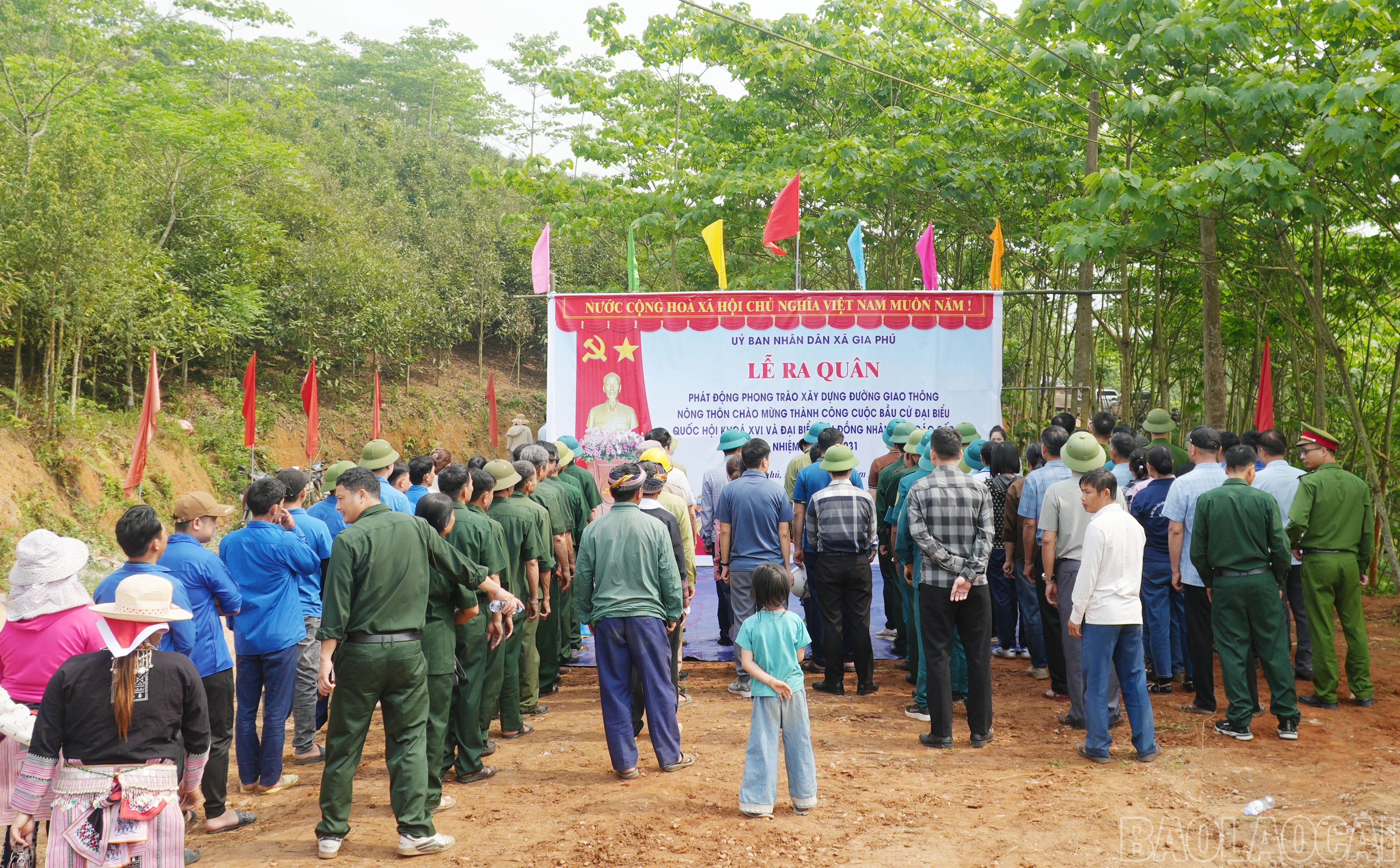 Ngày 4/4, xã Gia Phú đã tổ chức Lễ ra quân phát động phong trào xây dựng đường giao thông nông thôn tại Km10, tuyến Tả Thàng đi Nậm Phảng. Đây là hoạt động thiết thực chào mừng thành công cuộc bầu cử đại biểu Quốc hội khóa XVI và Đại biểu HĐND các cấp nhiệm kỳ 2026 - 2031, đồng thời tạo khí thế thi đua sôi nổi trong toàn xã chung sức xây dựng nông thôn mới.
