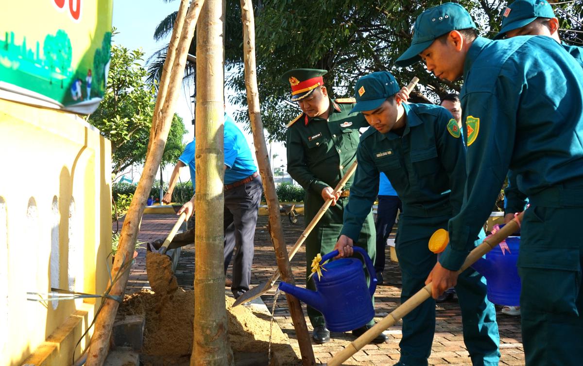 Sau lễ phát động, các lực lượng tham gia trồng cây xanh tại khu vực Đình Nại Nam.