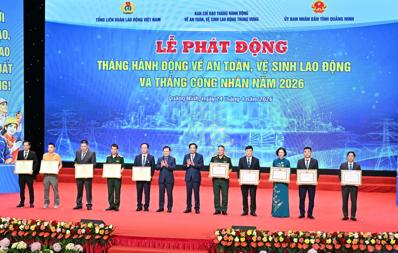 Tại buổi lễ, các tập thể, cá nhân có thành tích xuất sắc trong phong trào thi đua về an toàn, vệ sinh lao động, phong trào "Xanh -sạch - đẹp - an toàn", "Vườn hoa Công đoàn - doanh nghiệp xanh - sạch - đẹp" năm 2025 đã được nhận Bằng khen của Bộ trưởng Bộ Nội vụ, Chủ tịch Tổng Liên đoàn Lao động Việt Nam và Chủ tịch UBND tỉnh Quảng Ninh.