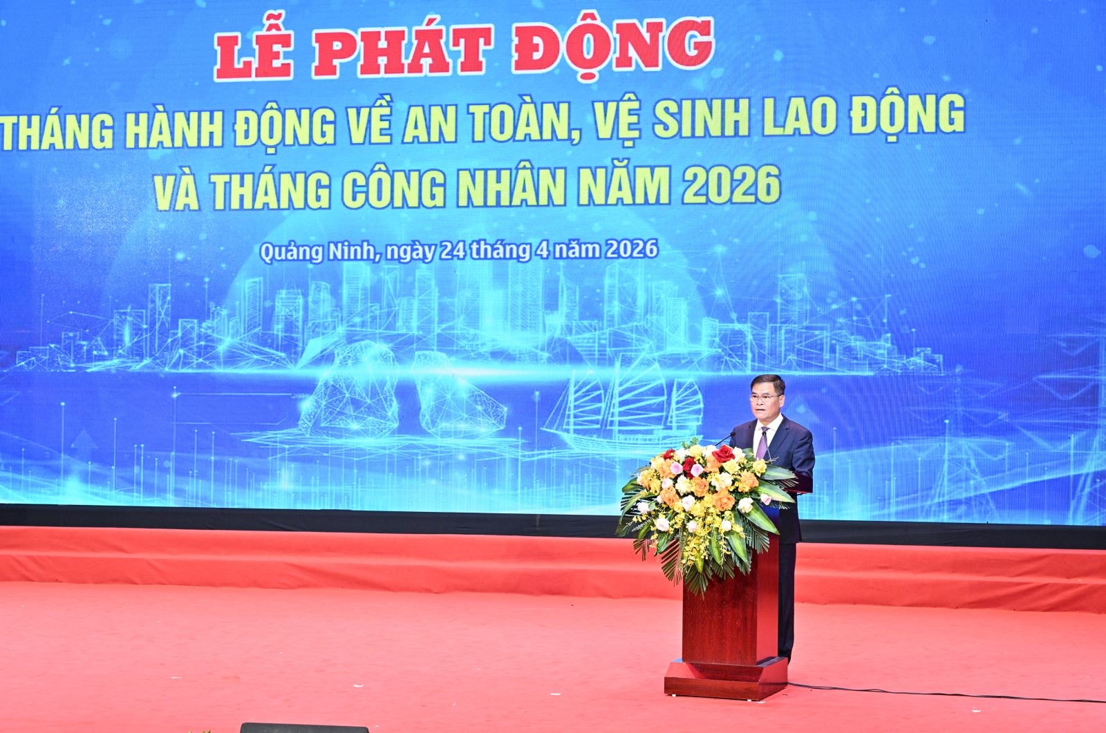 Phát biểu hưởng ứng Tháng hành động, Phó Bí thư Tỉnh ủy, Chủ tịch UBND tỉnh Quảng Ninh Bùi Văn Khắng cho biết: Quảng Ninh cam kết thường xuyên lãnh đạo, chỉ đạo, tổ chức thực hiện nghiêm các quy định về an toàn vệ sinh lao động, đẩy mạnh ứng dụng khoa học công nghệ, đổi mới sáng tạo và chuyển đổi số trong thực hiện mô hình tăng trưởng mới.