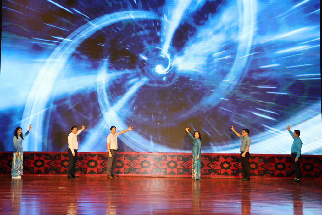 Các đồng chí lãnh đạo tỉnh nhấn nút khởi động Cuộc thi trực tuyến “Mỗi đoàn viên - một sáng kiến vì an toàn, vệ sinh lao động năm 2026".
