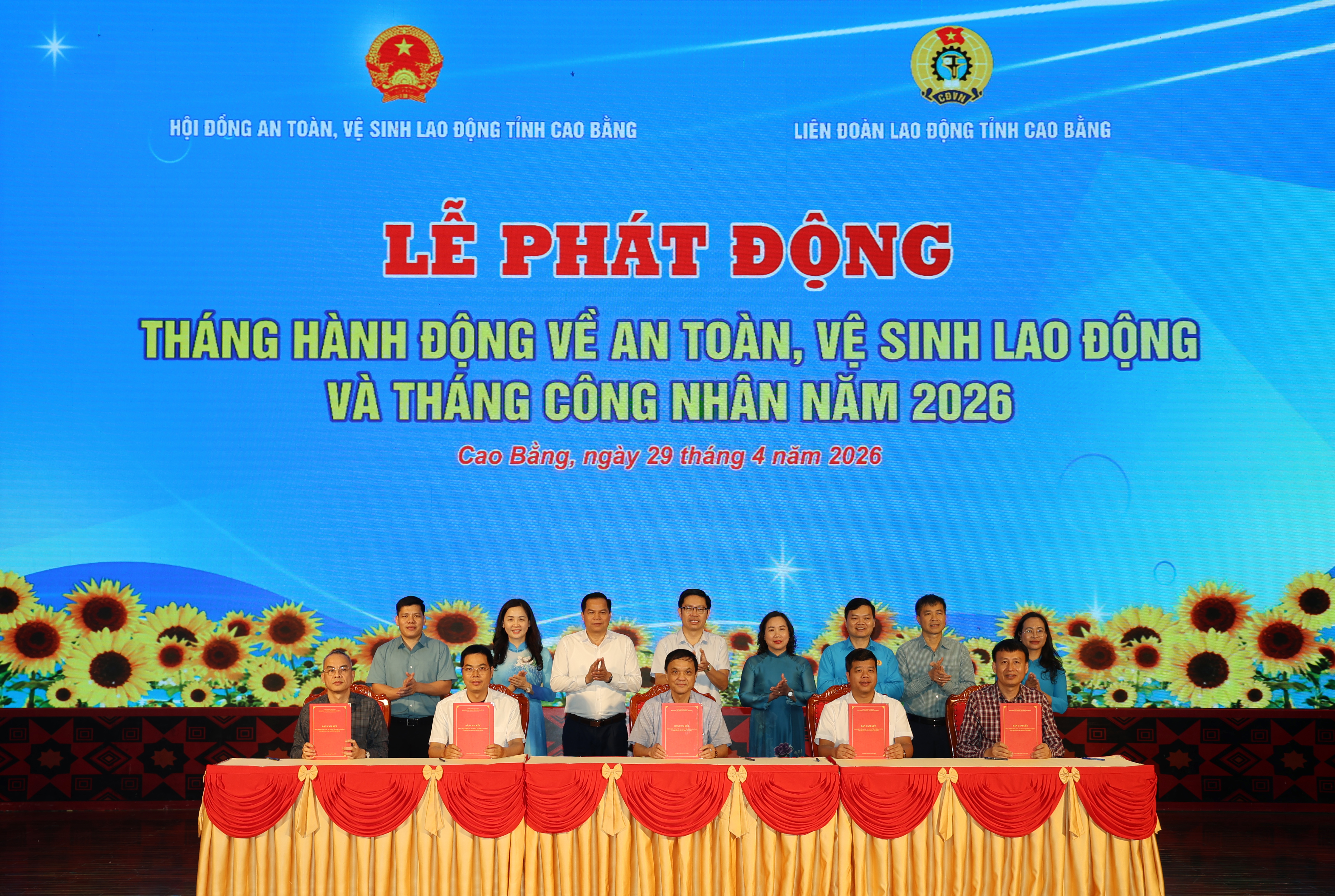 Tiếp đó, 6 công ty, doanh nghiệp ký cam kết thực hiện công tác ATVSLĐ với nội dung: Thực hiện đầy đủ, nghiêm túc các quy định của pháp luật về ATVSLĐ và chịu trách nhiệm trước pháp luật nếu để xảy ra vi phạm. Xây dựng, tổ chức thực hiện và chủ động phối hợp với các cơ quan, tổ chức trong việc bảo đảm ATVSLĐ tại nơi làm việc cho người lao động và các bên có liên quan; đóng bảo hiểm tai nạn lao động, bệnh nghề nghiệp đầy đủ cho người lao động. Tổ chức huấn luyện, hướng dẫn các quy định, nội quy, quy trình, biện pháp bảo đảm ATVSLĐ; trang bị đầy đủ phương tiện bảo vệ cá nhân, công cụ lao động bảo đảm ATVSLĐ; tổ chức khám sức khỏe định kỳ, khám phát hiện bệnh nghề nghiệp; thực hiện đầy đủ chế độ đối với người bị tai nạn lao động, bệnh nghề nghiệp cho người lao động...