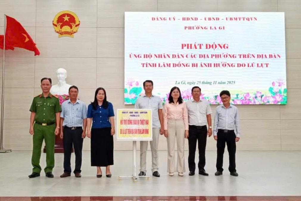 Lãnh đạo phường La Gi hưởng ứng phong trào hướng về đồng bào Lâm Đồng bị thiệt hại do mưa lũ