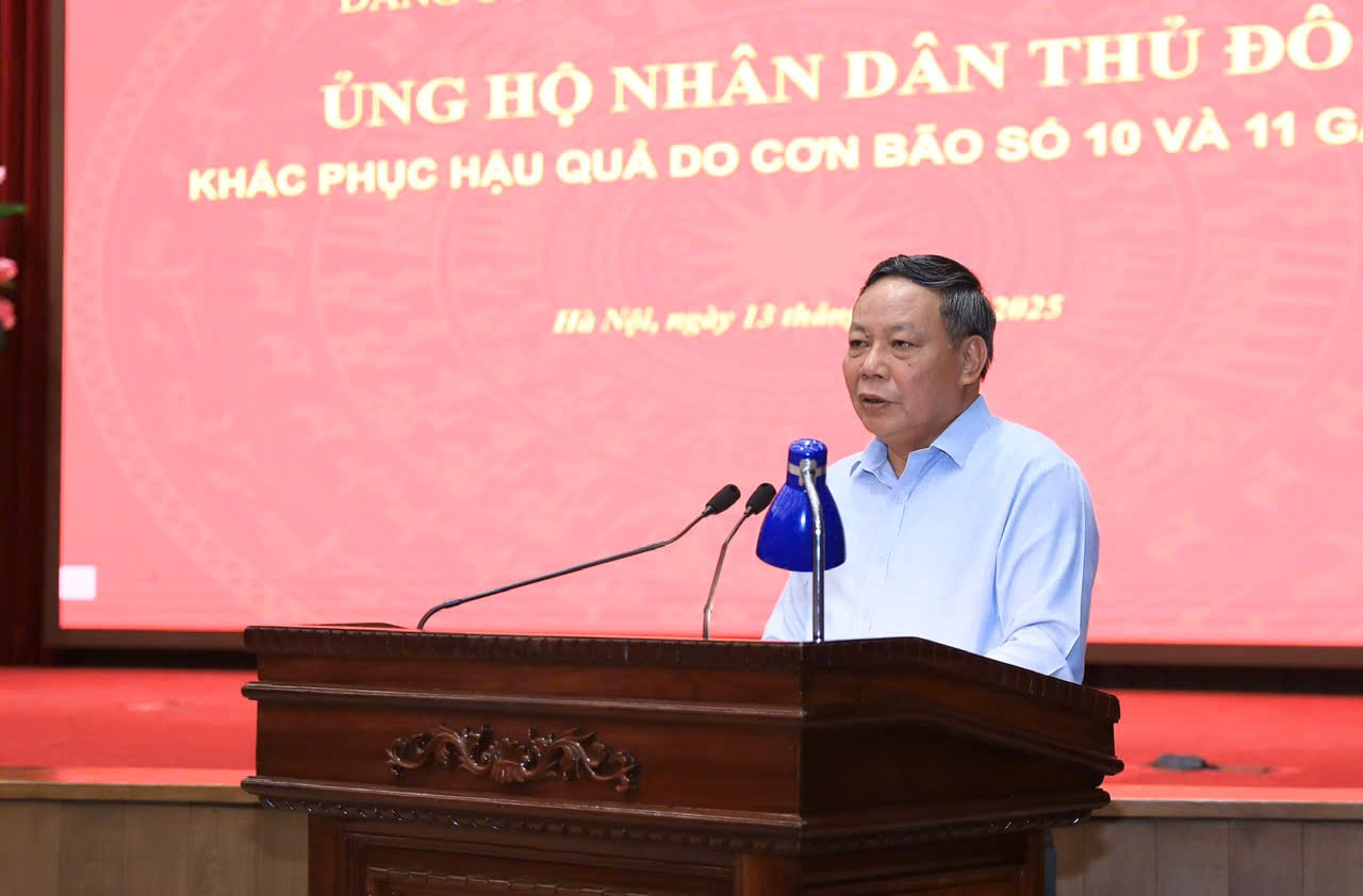 Phát biểu tại chương trình, Phó Bí thư Thường trực Thành ủy Hà Nội Nguyễn Văn Phong cho biết, cơn bão số 10 và số 11 đã gây ra nhiều thiệt hại đối với nhân dân các địa phương ở khu vực miền Bắc và miền Trung. Hà Nội cũng bị ảnh hưởng nghiêm trọng, khu vực nội thành bị ngập úng nhiều nơi; các xã ven sông Cầu, sông Cà Lồ bị ngập lụt nhiều ngày qua.