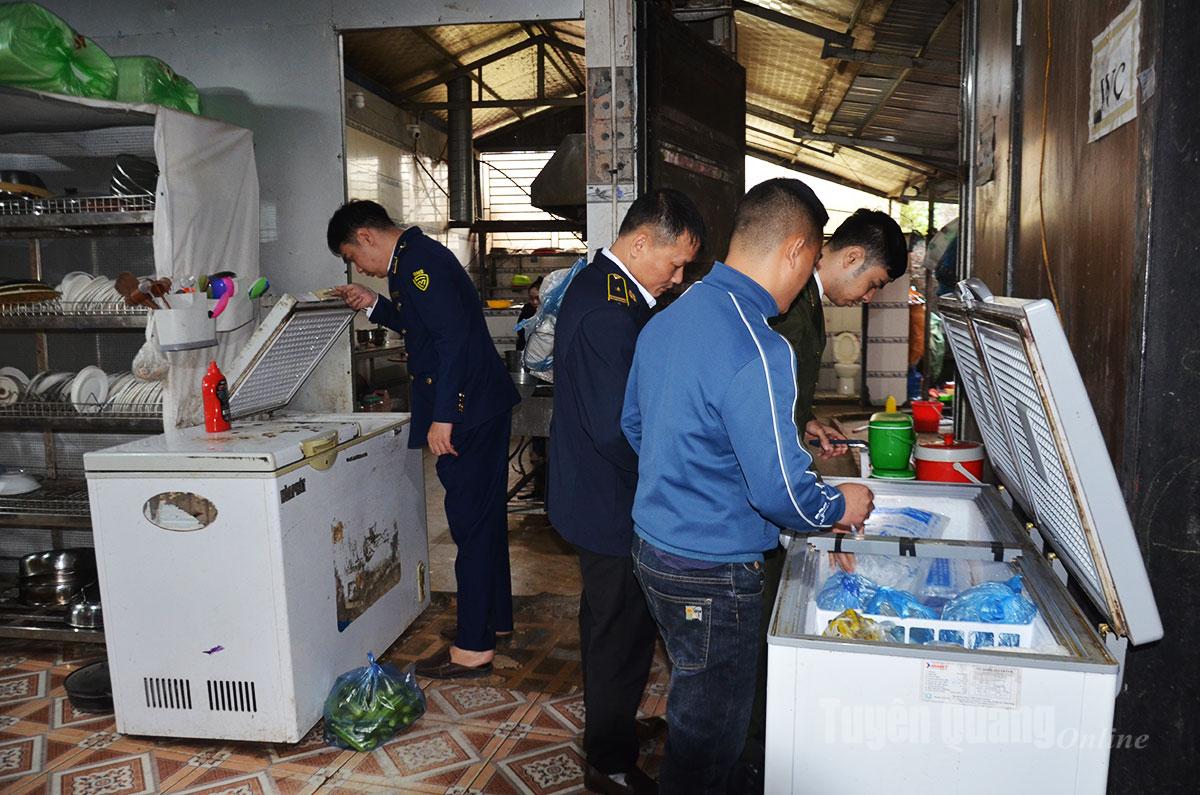 Tổ công tác liên ngành cấp tỉnh tiến hành kiểm tra khu cấp đông thực phẩm tại cơ sở kinh doanh ăn uống xã Bắc Quang.