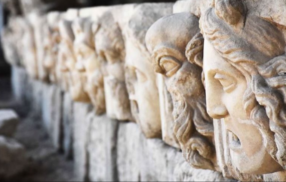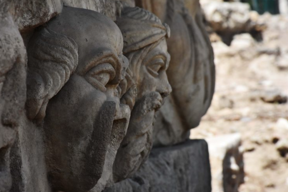 Giáo sư Tiến sĩ Bilal Söğüt, giám đốc khai quật thành phố cổ Stratonikeia cho biết: “Chúng tôi đã tìm thấy một phần lớn các chiếc mặt nạ thần được đính trang trí về cả hai lối vào bên hông tàn tích nhà hát cổ và bên ngoài khu vực sân khấu”. Ảnh: @Đại học Pamukkale.