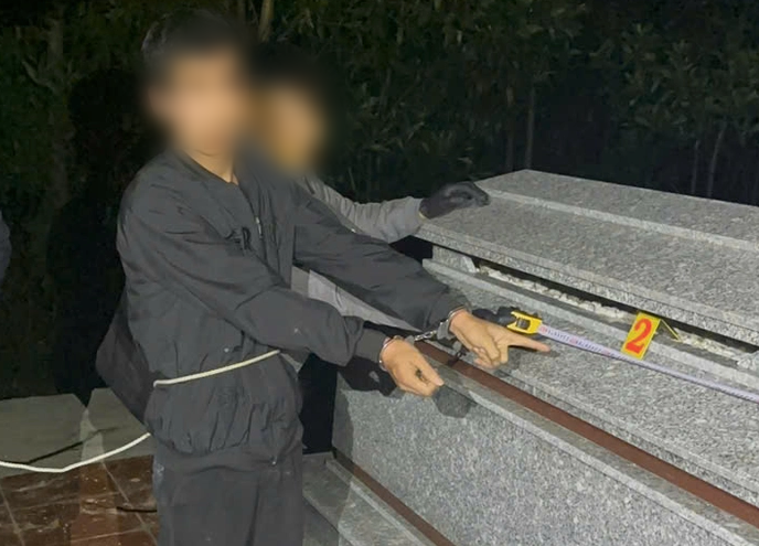 Các đối tượng giấu ma túy tại khu vực nghĩa trang.