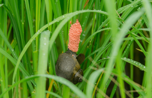 Ốc bươu vàng gây thiệt hại cho mùa màng.