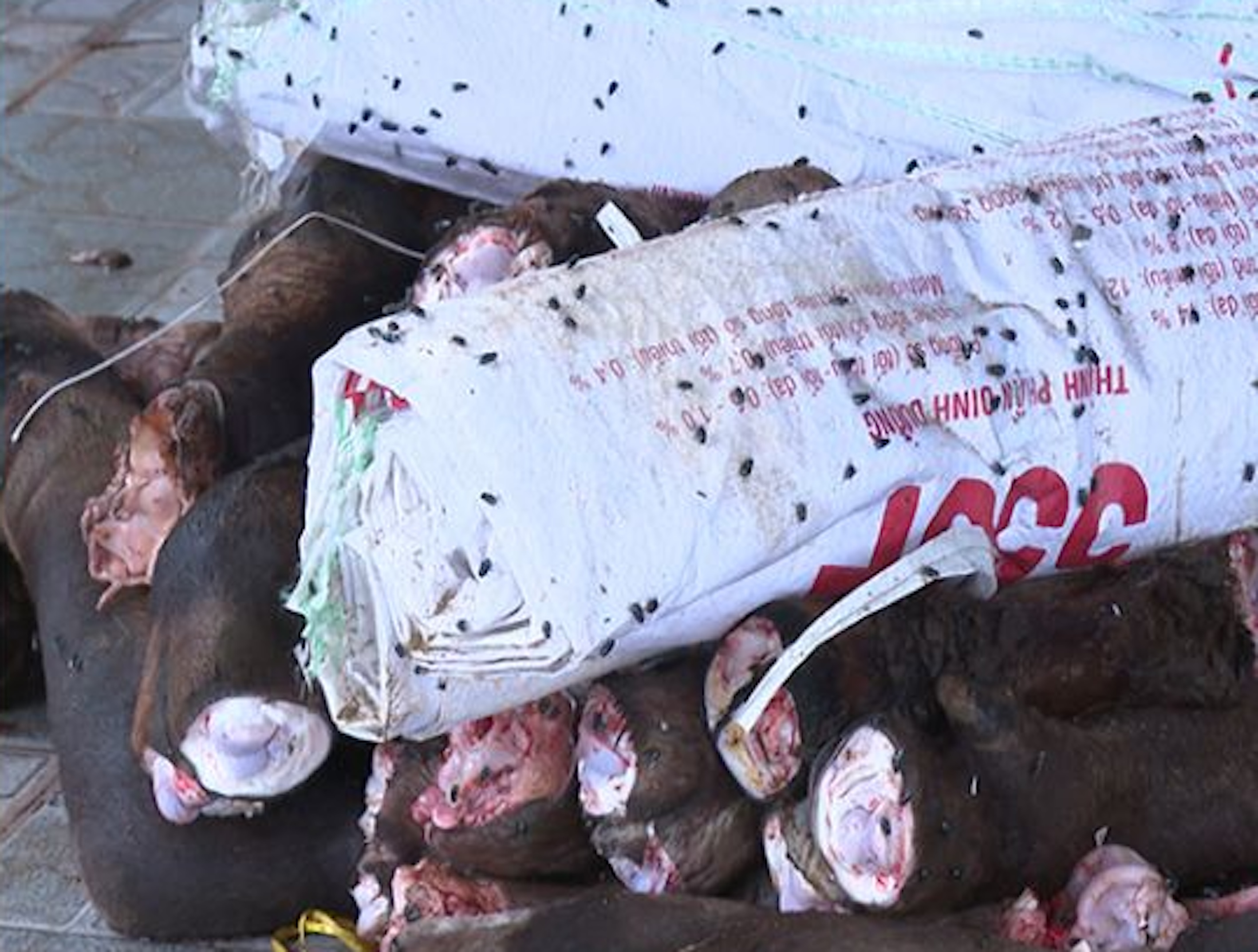 Công an tỉnh Thanh Hóa cho biết, Phòng Cảnh sát kinh tế Công an tỉnh vừa chủ trì phối hợp với Chi cục An toàn vệ sinh thực phẩm và Đội Quản lý thị trường số 09 (Chi cục Quản lý thị trường tỉnh Thanh Hóa) thực hiện kiểm tra đột xuất 2 kho lạnh đồng thời là cơ sở thu mua, chế biến xương, đuôi, chân trâu, bò tại xã Hoàng Giang và xã Thọ Long (tỉnh Thanh Hóa).