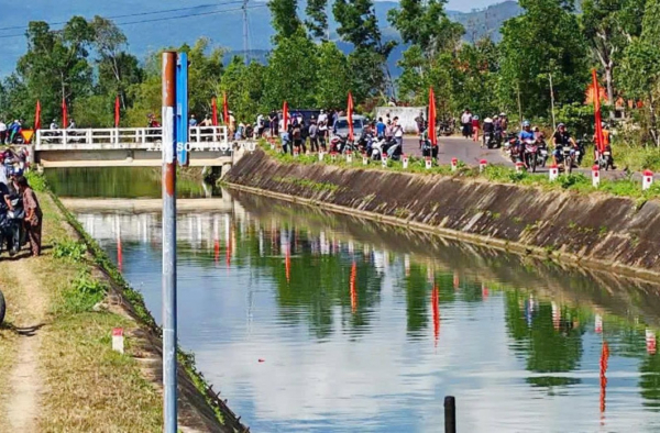 Vị trí xe ô tô gặp nạn có lòng kênh rộng, nước chảy mạnh (Ảnh: TSHT).