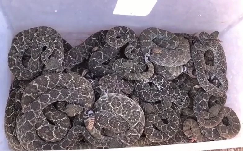 Vụ việc xảy ra tại một nhà dân ở thị trấn Bronte, bang Texas, Mỹ, khi 39 con rắn đuôi chuông được tìm thấy đang trú ẩn giữa hệ thống đường ống dẫn khí bên dưới ngôi nhà.