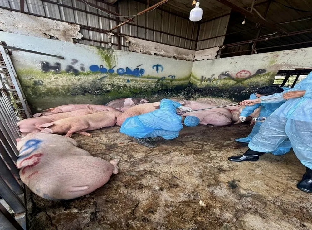 Tiến hành test nhanh, lực lượng chức năng phát hiện số heo đang nuôi nhốt dương tính với chất cấm (chất tạo nạc Sabutamol) trong chăn nuôi nên lập biên bản để xử lý theo quy định.
