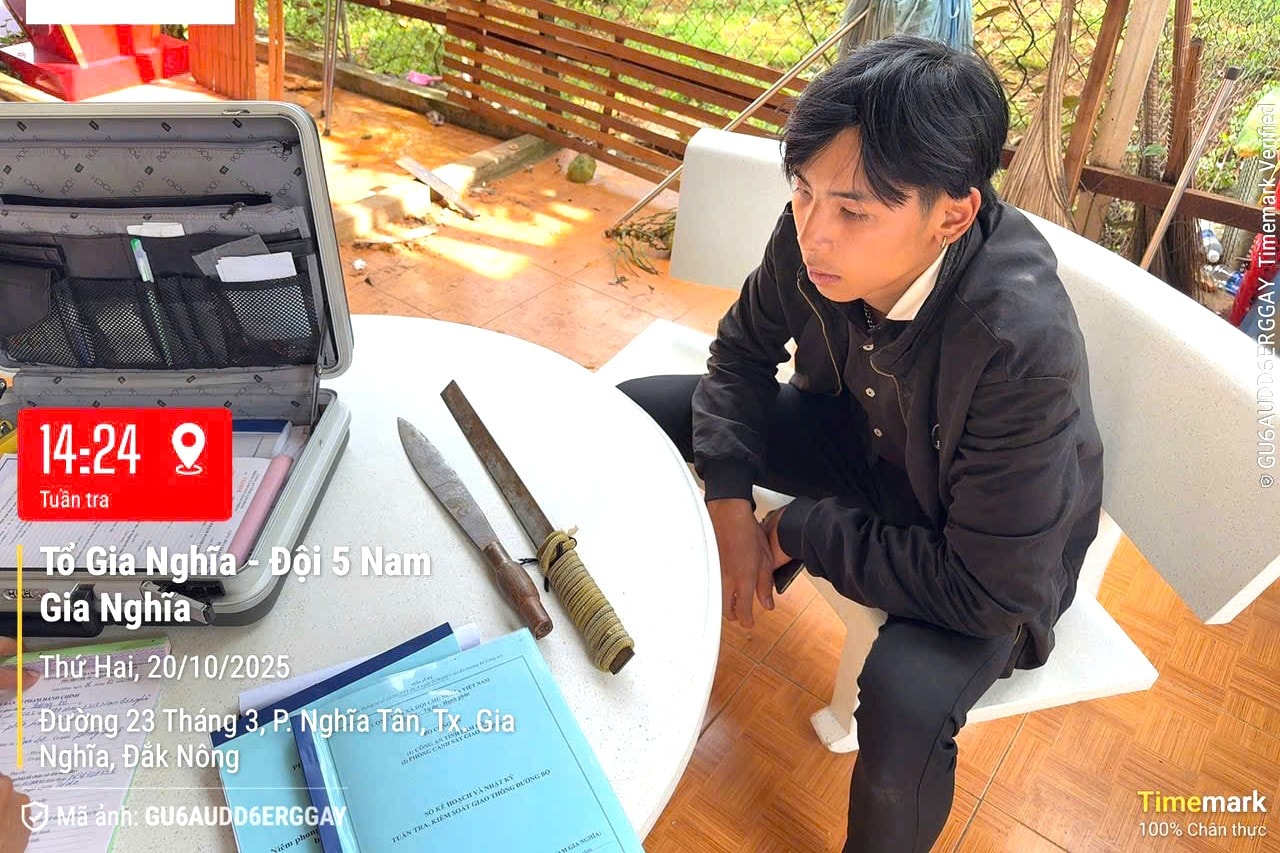Trước đó, khoảng 15 giờ 10 phút ngày 20/10, trong quá trình tuần tra, kiểm soát tại khu vực phường Nam Gia Nghĩa, Tổ tuần tra thuộc Đội CSGT số 5 - Nam Gia Nghĩa, Phòng PC08 phát hiện một xe máy không gắn biển kiểm soát có biểu hiện nghi vấn. Tổ công tác tiến hành dừng phương tiện để kiểm tra, tuy nhiên người điều khiển không xuất trình được giấy tờ xe và giấy phép lái xe.