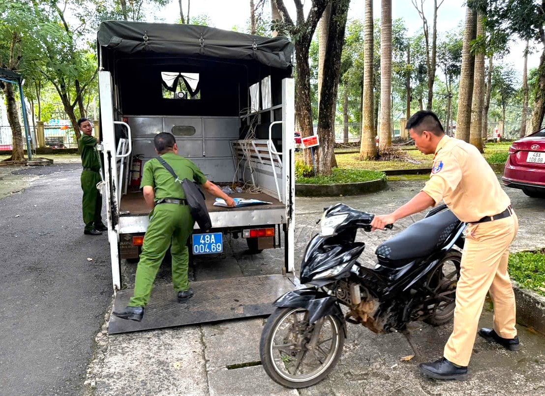 Lực lượng CSGT bàn giao phương tiện trộm cắp cho Công an xã Kiến Đức để điều tra, xử lý theo quy định