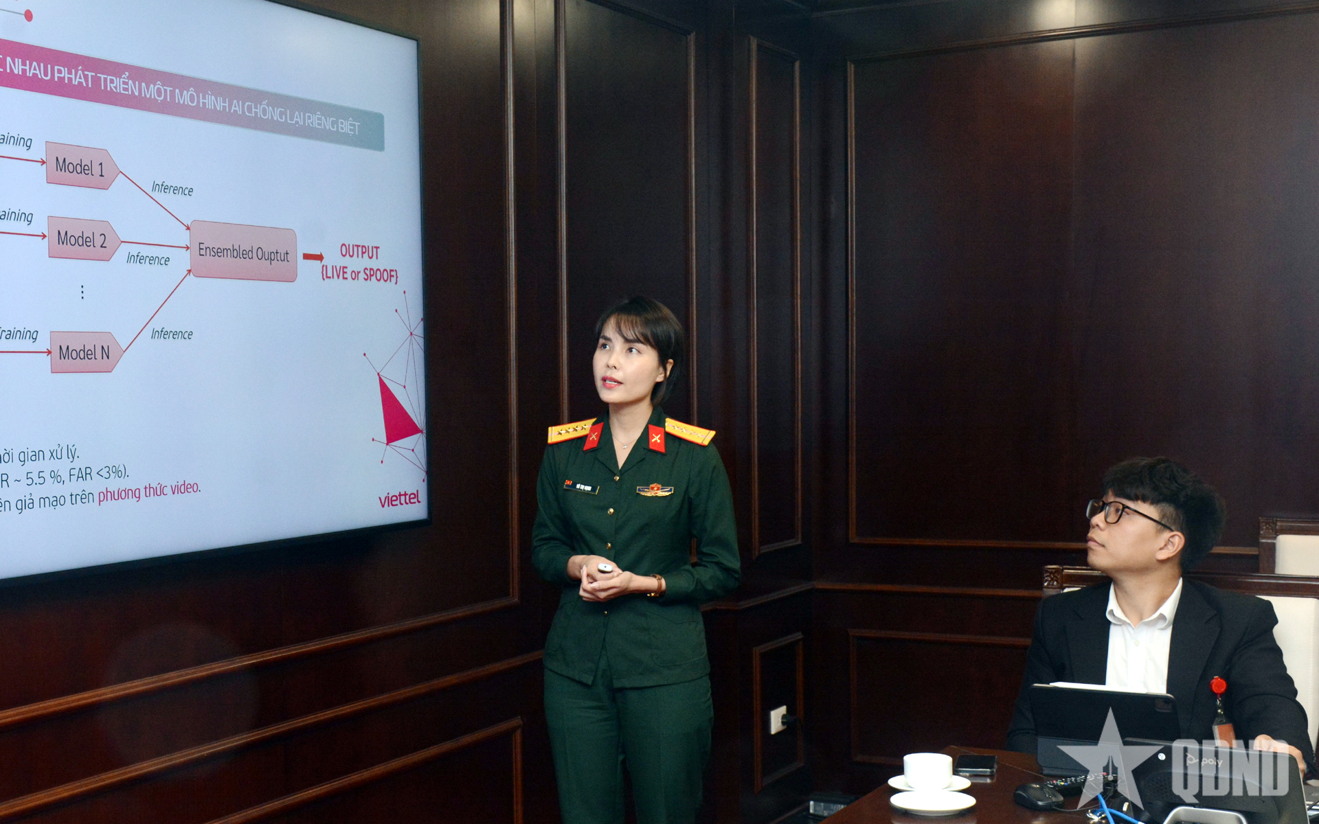 Tài năng trẻ của Tập đoàn Công nghiệp - Viễn thông Quân đội tự tin thuyết trình công trình do mình làm chủ nhiệm tham gia Giải thưởng Tuổi trẻ sáng tạo trong Quân đội lần thứ 26.