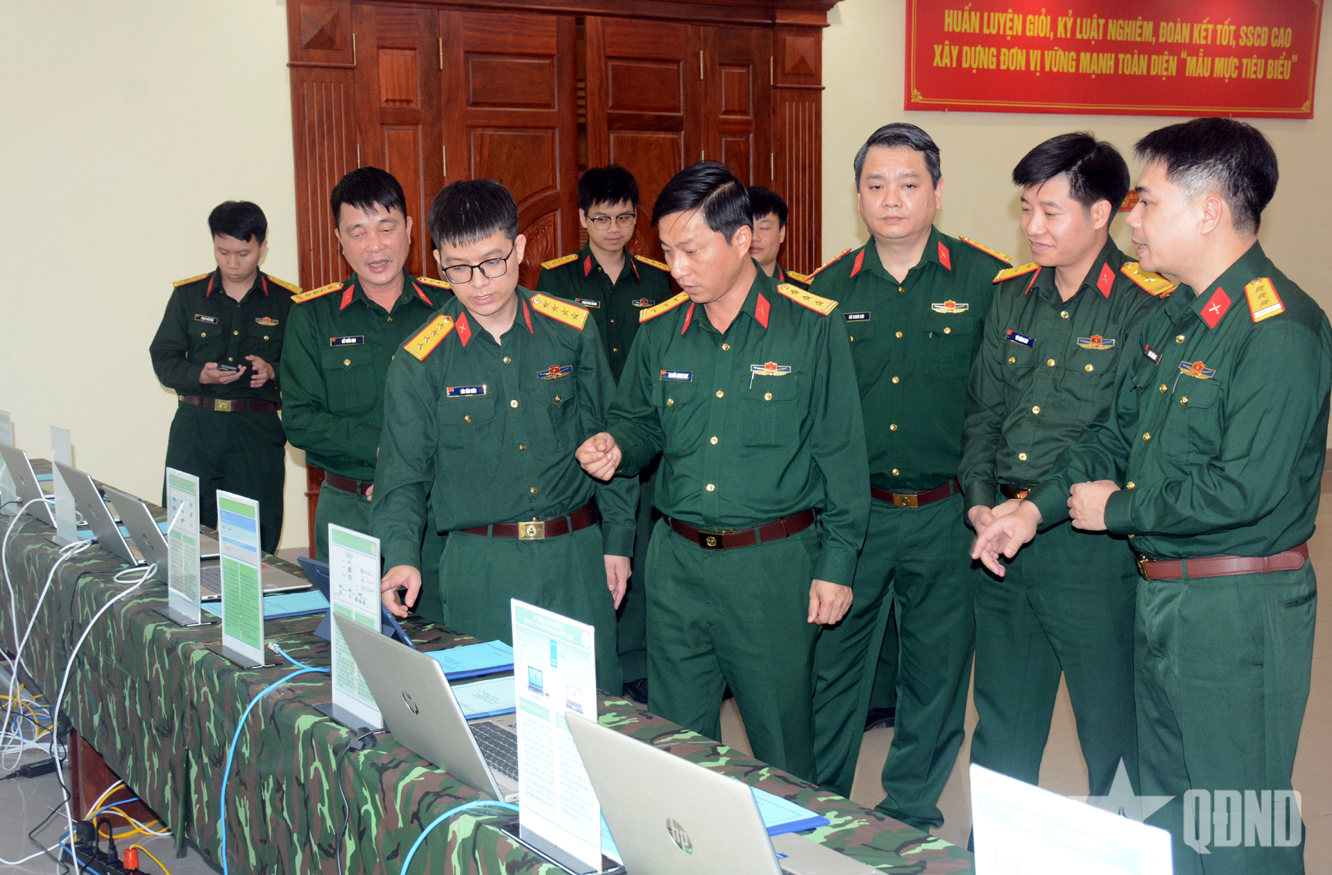 Được sự quan tâm của cấp ủy, chỉ huy các cấp, cán bộ, sĩ quan trẻ trong Bộ tư lệnh 86 đã tích cực tham gia nghiên cứu, sáng kiến cải tiến nhiều công trình chất lượng, ứng dụng hiệu quả vào thực tiễn. Trong ảnh: Đoàn công tác Ban Thanh niên Quân đội tham quan các công trình, sáng kiến tham gia Giải thưởng Tuổi trẻ sáng tạo trong Quân đội của tuổi trẻ Bộ tư lệnh 86.