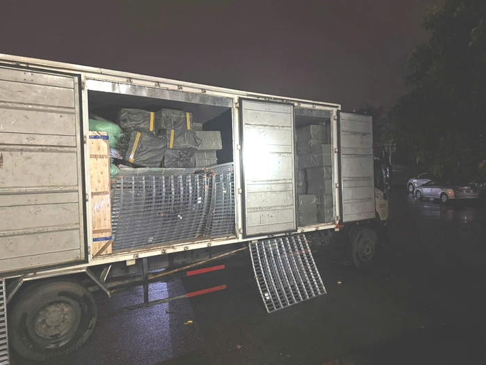 Kiểm tra xe, tổ công tác phát hiện trong thùng hàng hóa cất giấu tổng cộng 69.500 bao thuốc lá ngoại các loại, ước tính trị giá gần 2 tỉ đồng.