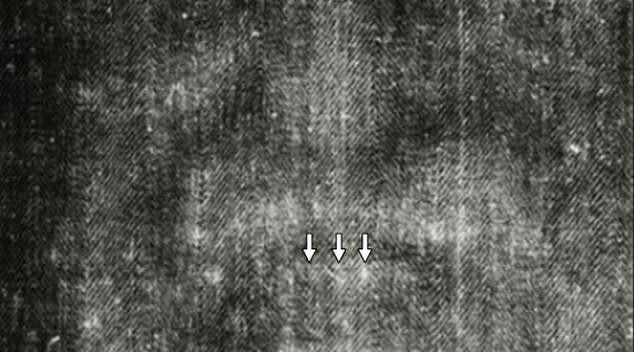 Mới đây, bác sĩ phẫu thuật nha khoa John Sottosanti tuyên bố đã phát hiện một chi tiết ẩn giấu tấm vải liệm thành Turin. Đó là dấu răng mờ nhạt trên tấm vải cổ xưa trên. Ảnh: Universal Images Group via Getty.