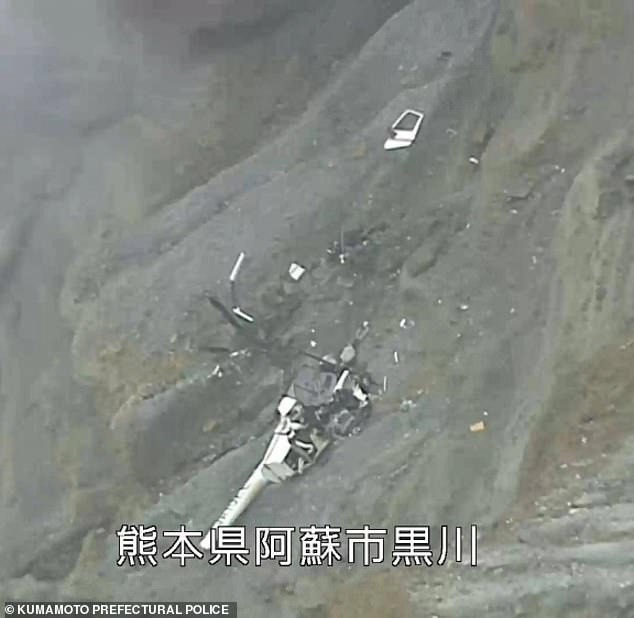 Hình ảnh chiếc trực thăng bị biến dạng đã được công bố. Nguồn: Cảnh sát tỉnh Kumamoto.