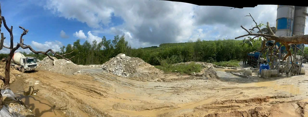 Đây là đơn vị cung cấp bê tông thương phẩm cho một số dự án trọng điểm quốc gia trên địa bàn. Qua kiểm tra, lực lượng chức năng phát hiện công ty này có hành vi đổ bã bê tông thải ra môi trường trái quy định tại sáu vị trí xung quanh trạm trộn; đồng thời xả trực tiếp nước thải phát sinh trong quá trình sản xuất bê tông, chưa qua xử lý, ra môi trường, vi phạm nghiêm trọng quy định về bảo vệ môi trường.