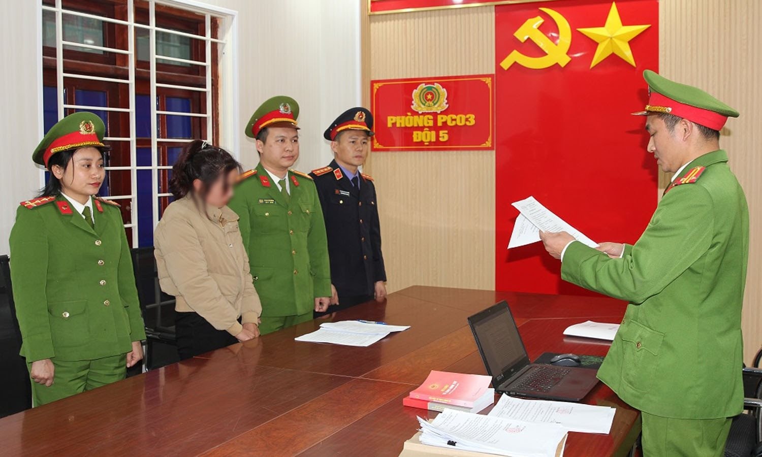 Cơ quan Cảnh sát điều tra Công an tỉnh Nghệ An đọc lệnh khởi tố vụ án, khởi tố bị can đối với Lê Thị Lộc.